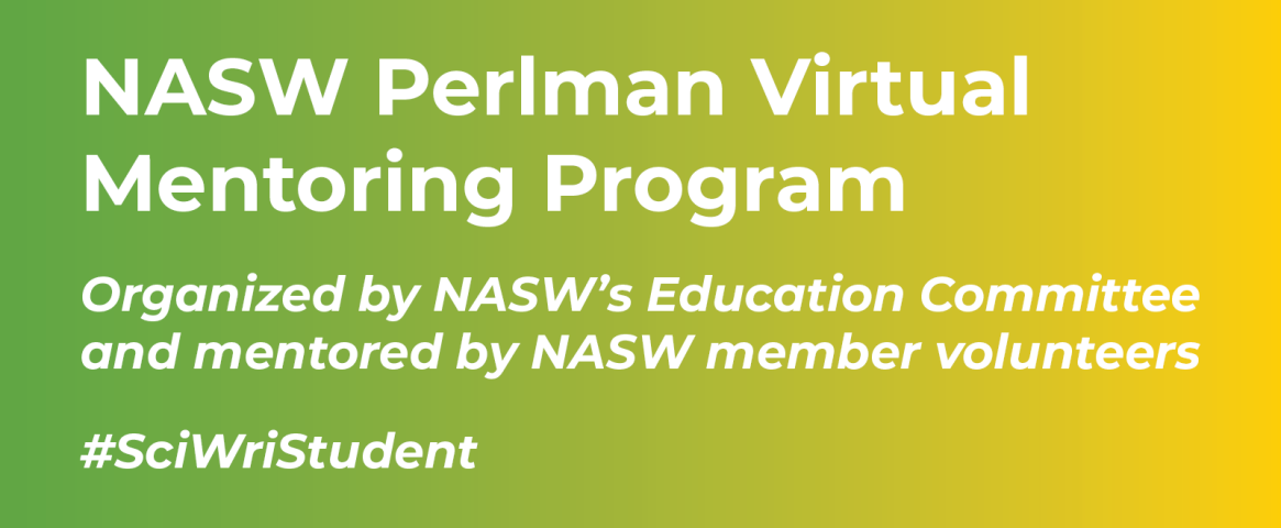 The NASW Perlman Virtual Mentoring program is named for longtime science writer and past NASW President David Perlman. Dave, who died in 2020 at the age of 101 only three years after his retirement from the San Francisco Chronicle, was a mentor to countless members of the science writing community and always made time for kind and supportive words, especially for early career writers. Contact NASW Education Committee Co-Chairs Czerne Reid and Ashley Yeager and Perlman Program Coordinator Courtney Gorman at mentor@nasw.org. Thank you to the many NASW member volunteers who spearhead our #SciWriStudent programming year after year.