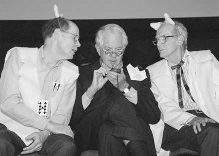 Eight of the ten new winners-from Japan, Korea, Norway, England, Canada, Australia, South Africa, Belgium, and the US-journeyed to Harvard at their own expense to accept their Prizes from real Nobel Laureates William Lipscomb (Chemistry '76), Dudley Herschbach (Chemistry '86), Sheldon Glashow (Physics '79), and Robert Wilson (Physics '78) before a paper-airplane-throwing audience of 1200. The 1999 winners were: