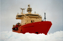 I had story deadlines at the end of every week. Peter West, my NSF editor, wanted digital images to accompany every story. But when I told the computer technicians of my needs, they said no dice. Sending large electronic files was expensive, so crew and scientists were only allowed to send one attachment every two weeks, and no large picture files. These rules didn't apply to Mark Christmas, who had a big budget from National Geographic to cover this type of expense. He could send whatever he wanted. But as an intern, I had far less clout. My editor went to bat for me, but it still took a week of high-level negotiating at NSF before I was given approval to send a half-dozen images per story. There were other things I know now about working in extreme conditions that I wish I'd known then. Such as, the more notebooks the better. Each time I went out on a zodiac, my pages would get soaking wet. Also, pens freeze in this type of environment, making it necessary to keep at least ten writing instruments in my jacket pocket at all times, so I could grab a new one when the one in my hand clogged, keeping the words flowing. I was glad to have such an inventory the day our zodiac traveled with four humpback whales. They were close enough to touch. A humpback mother apparently deemed us too close and appeared to spout angrily before diving deep with her baby. Platforms of ice surrounded the zodiac, whose deep orange color was contrasted against the gray sky and blue-black water. The Nathaniel B. Palmer was a mile away. Had my pens failed me, reconstructing that moment from memory, instead of from written notes, wouldn't have been the same.