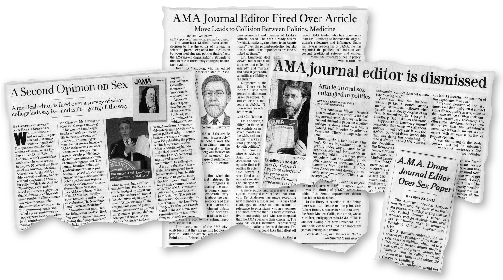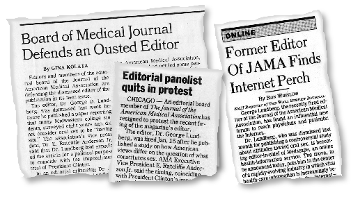 The news broke in major dailies on January 16, attributing the firing to a paper scheduled to appear in the January 20 JAMA. The offending paper reported that in a study of college students, 59 percent did not consider oral sex as having sex. Dr. E. Ratcliffe Anderson, executive vice president of AMA, said that Lundberg had been fired because he has threatened the historic tradition and integrity of the Journal of the American Medical Association by inappropriately and inexcusably interjecting JAMA into a major political debate that has nothing to do with science or medicine.