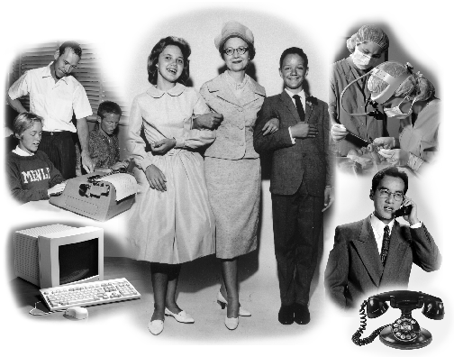 I wrote of John and Emily Future, a couple invented to portray a 1999 family. But while I envisioned a space-age kitchen, and futuristic gadgets to ease everyday life, John and Emily were essentially Ozzie and Harriet, very much a product of the 50s. Emily had the girls over for cards; she called her husband at work to see when she should start dinner. She was untouched by womens liberation, womens new work force, the growth of divorce, the instability of many jobs.